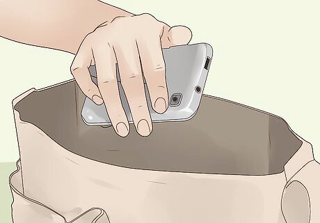 Carry your phone in your bag or pocket. When you take your phone with you places, don’t carry it in your hand. Put your phone somewhere where you can’t see it. This is especially important when you drive. Texting and driving is very dangerous to you and everyone you share the road with. Make sure your phone is hidden away when you drive so you are not tempted to look at it and text.