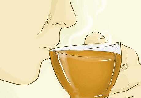 Drink an herbal tea. Herbal tea can help relax you and put your body into a calm state. Get in the habit of drinking tea each night before bed and making it part of your calming ritual. An ingredient called L--theanine is found abundantly in tea leaves and can help the body feel calm and relaxed without sedation or risk of dependence. Prepare yourself a cup of uncaffeinated herbal tea each night to encourage your body to relax and go to sleep peacefully. Try chamomile, licorice, or another calming tea you enjoy. If you don't like tea, try warm milk or water before bed instead.