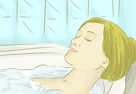Take a bath. If you struggle to calm your mind and body before bed, try taking a soothing bath. Infuse the bath water with a smell you enjoy and that brings you peace. Letting your body relax into the warm water can help your mind begin to relax, too. Don’t let any anxious thoughts come into your space while bathing. If they do come in, let them pass without latching on to them or entertaining them.