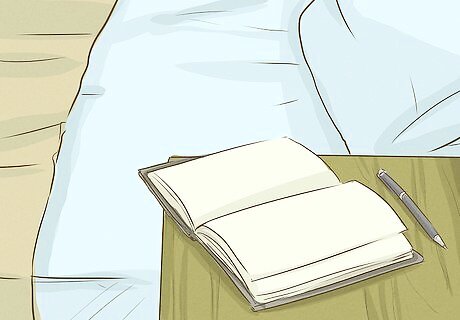 Empty your mind before bed. Thinking about your to-do list and your worries can keep you up at night. Try to get all of those thoughts out of your head before you lie down to go to sleep. Keep a journal next to your bed and write out your to-do list and thoughts before you go to sleep. Have everything you need for the next day organized and planned out so you're not thinking about it as you're trying to fall asleep.