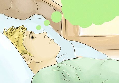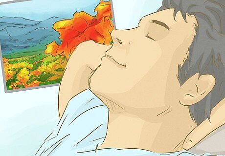 Practice visualization to increase a sense of calm. Dealing with nightmares can make you feel alert and awake, so help your body calm down by using visualization techniques. Use your imagination as a way to increase feelings of calm and relaxation. Creating a calming image can help you relieve stress and anxiety. For example, close your eyes and imagine that you are on a beautiful beach, surrounded by the calming waves, soft wind in the trees, and the smell of coconuts around you.
