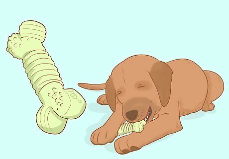Give teething dogs soothing treats. Like human babies, young puppies go through a period of "teething" as their teeth come in. This can lead young dogs to chew incessantly, even when they're otherwise well-trained. To help with teething, try freezing a wet washcloth and giving it to your puppy to soothe the soreness caused by the teeth coming in.