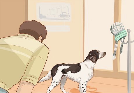 Teach your dog the "leave it" command. If you're willing to put in a little extra time and effort, it's possible to teach your dog a handy command that can save your possessions in cases where you catch the dog chewing on them. To teach this command, use the following steps: Get two small treats and hide one in each fist. Get the dog's attention with one treat, then sharply tell your dog, "leave it" (referring to the object it is chewing). Don't let the dog have the treat. Let them sniff and lick at your hand, but don't let the treat go. Ignore your dog if they start to bark or whine. As soon as they lose interest in your hand, however, offer it the treat from the other hand and give them lavish praise. Repeat this process until your dog moves away from your hand as soon as you say "leave it." This teaches your dog that ignoring whatever they want to bite or chew on is better than chewing on that thing. Be persistent; do this over and over, and your dog should get the hang of this command.