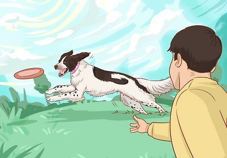 Play with your dog and keep it interested in new things. Dogs don't just want toys; they want fun, happy interactions with the people in their family! Be sure to take the time to play with your dog a little bit every day, especially if they've been chewing. Just twenty minutes or so of play per day can go a long way towards expending a dog's excess energy and calming it down. Lots of play and exercise can tire your dog in a safe and beneficial way so that they don't expend extra energy on inappropriate chewing. Dog classes are available in many areas. These are an opportunity for pets and owners to practice together to help a dog learn new tricks or behavior. Keeping your dog active in this way can discourage excessive chewing.