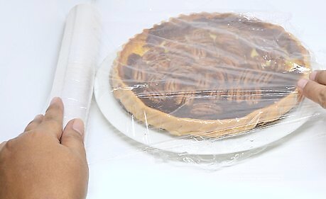 Wrap the pie in plastic wrap or foil. It’s important to keep the surface of the pie away from contact with the air. You can use foil or plastic wrap, whatever you have on hand. Make sure the entire pie pan is wrapped. This will ensure that there are no gaps in the covering that will let air in.