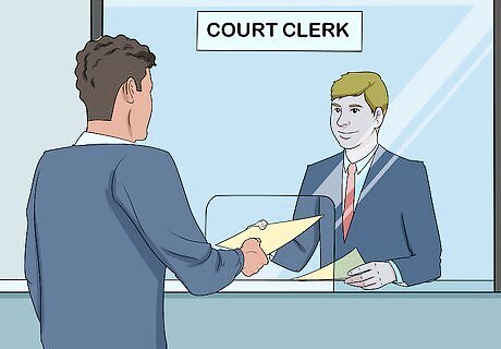 Take your complaint to the clerk of court. File your complaint with the court to initiate your lawsuit. Bring along your original documents plus a couple of copies. To file your complaint, you'll have to pay a filing fee – typically several hundred dollars. If you can't afford the filing fee, you may be eligible for a waiver. Ask the clerk for details. Once you file the complaint, the clerk will stamp the originals and keep them for the court. They'll also stamp the copies and return those to you. One of the copies is for your records. The other copy you will have to send to the school using a particular method called service of process. Typically, this means paying a small fee to a sheriff to deliver the documents.