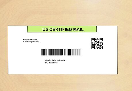 Send your letter to the school. Mail your letter to the school using U.S. certified mail with return receipt requested. That way you'll get a postcard in the mail when your letter is received. You'll need this postcard later to prove to the court that you sent the school your notice of intent to sue. Without this proof, your lawsuit may be automatically dismissed. When you get the card, put it in a safe place.