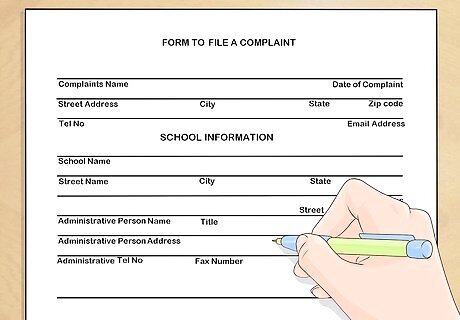 Participate in the investigation. When your complaint is received, the district will undertake an investigation of the incident. They may interview you as well as others who witnessed the incident or who talked to you or your child about the incident. At the conclusion of the investigation, the district will let you know what they've decided to do as a result of the incident. If you're not satisfied with the actions taken by the district, you may have the ability to sue the school and the school district at that point.
