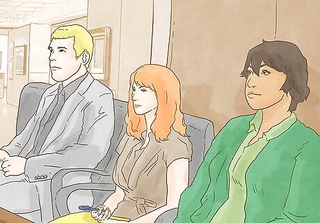 Sit in on a trial. If you are representing yourself, then you would benefit greatly from sitting in on a trial. Courthouses are generally open to the public, and you can sit in on any trial or hearing being held. Be sure to pay attention to the following: How people dress. You want to look professional during your trial, so look to see what is standard court attire. Where the people sit. Look where the plaintiff sits and where the defendant does. Does each have a table? How they talk to the judge. Do they call the judge “Your Honor” or by the judge’s last name (such as “Judge Smith”)? Do they talk to the judge while standing at their table, or do they approach the judge’s bench? How they question witnesses. Where do the lawyers stand when they ask witnesses questions? Do they stand at a lectern? Sit at their table? What tone of voice do they use when asking witnesses questions?