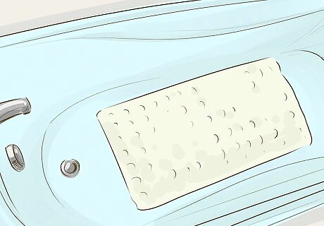 Place textured surfaces in your tub and/or shower. Slip-resistant stickers, strips, and mats are readily available, and are designed to prevent falls on the slick wet surface of your shower. You can find these sorts of materials at home supply stores and many general merchandise stores. They usually install easily, just like a sticker.