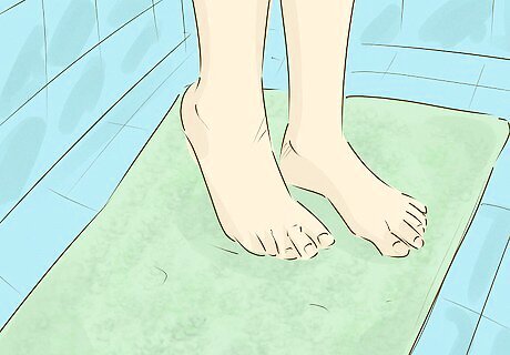 Use non-slip mats on your bathroom floor. It’s a good idea to have a mat to step onto once you get out of the shower. This will collect any water that drips off of you, keeping it from pooling on the bathroom floor and posing a slip hazard. Look for a mat that has a bottom surface that is non-slip or that will attach to the floor (with suction cups, for instance).