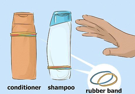 Use tactile aids. You can also rely on your sense of touch to help you select the right materials to use in the shower. For instance, you can use one cloth for washing your face, and select a cloth with a contrasting texture to use for washing your body. Likewise, if your shampoo and conditioner bottles are the same size and shape, place a rubber band around one of them so you can tell them apart.