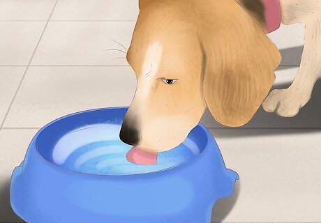 Keep your pet hydrated. Being in the sun and getting extra exercise means more water is necessary. Have cool water and a container to drink it from ready for your pet at all times. Make sure you are giving your pet clean water. If you are not sure there will be a water source available where you are going, bring enough for both you and your pet.
