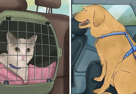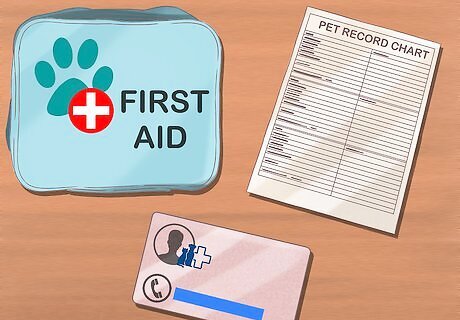 Bring items that will help if an emergency occurs. When going somewhere with a pet, it's good to have supplies and information that will help you if it gets injured or lost. With this in mind, be sure to bring items such as a first-aid kit for your pet, safety equipment (such as a life jacket), and your pet's veterinary records and contact info.