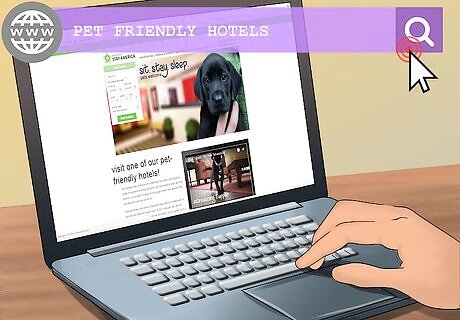 Find a hotel that is pet-friendly. Check websites that list pet-friendly hotels, resorts, house rentals and bed and breakfast facilities. Most accommodations that accept pets will advertise themselves as pet-friendly on their websites. If a beach resort has pet-friendly accommodations, then it is likely that your pet will be welcome on the beach there as well. If you are unsure whether a hotel accepts pets, call them and ask. It's better to know if your pet will be welcome before you make a reservation. Expect to pay a pet deposit. Most hotels charge pet deposits of between $10 and $30 per night.