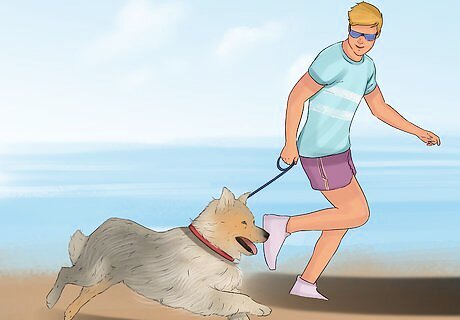 Touch the sand to make sure it is not too hot for your pet’s feet. Make sure to check the temperature of the sand before your dog walks on it. If the sand is so hot that it burns your hand when you touch it, then it will also burn your pet’s paws. Consider putting some booties on your dog or waiting until the sand cools down to go on the beach, such as near sunset.