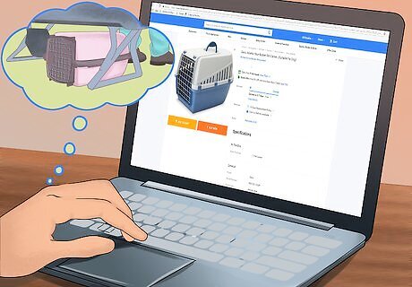 Get a carrier to hold your pet that fits under the seat if you are flying. Most airlines will not allow you to carry a pet onto the plane without stowing it in a carrier under the seat in front of you. Make sure the carrier you buy will both fit under the seat and will fit your pet. Contact your airline to find out how big the area under the seat is. If your pet won't fit under the seat in front of you, it's probably best to figure out a different way to get to your destination or to leave your pet at home. While you can use a carrier as your checked luggage or put it in cargo, the cost of this can be very large and the experience can be stressful for your pet.