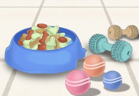 Bring toys, treats and other fun supplies for your pet. Don't forget to pack the fun stuff for your pet too! Being on vacation means that you will have lots of time to play with your pet, so make sure to bring items that will keep it occupied and that will help you bond with your pet. It's also a good idea to bring things that remind your pet of home. For instance, its favorite toy will have a familiar smell that can provide some comfort. In addition to bringing your pet's usual toys, get some beach-specific toys as well. A new frisbee, ball, or floating throw toy can give your pet hours of entertainment. If you plan on spending time on the sand, make sure to bring items that you can get the sand off of easily. For instance, hard surfaces are better than soft ones, as sand can become imbedded in fabric.