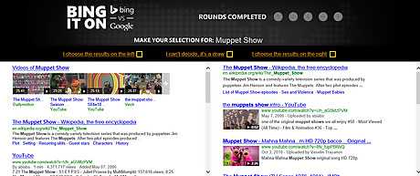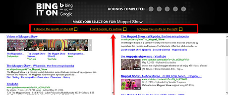 Make your choice. Click the "I choose the results on the left", if the search service looks better on the left than it does on the right. Click the "I choose the results on the right" if the results on the right look appealing to you. Click "I can't decide, it's a draw" 's box in the center of the screen, if you can't decide, or both look appealing.