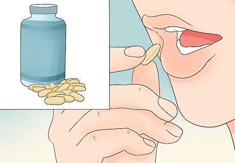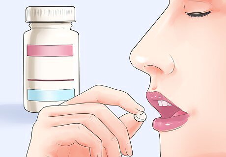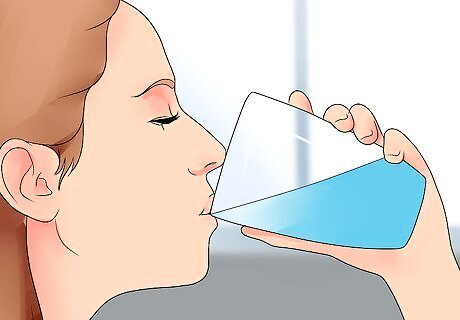 Drink a glass of water with the medication. Take thyroid medication (especially levothyroxine sodium or Levoxyl) with lots of fluid because the tablets tend to dissolve very quickly and can swell in the back of your throat in response to saliva and cause gagging or choking. As such, take the tablets with a large glass of water (about 8 ounces) in order to wash them down without incident. Stick with purified water and don't wash the tablets down with juice, milk or coffee because it make affect how they are absorbed. Don't use excessively cold water because it may cause your throat to constrict a little (become more narrow) and make it more difficult to swallow the tablets.