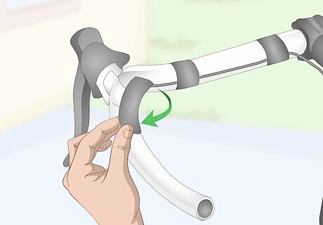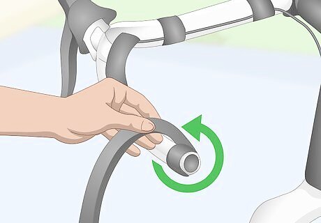 Tape down the cables. Secure any cables that run along the handlebars with electrical tape. Some bikes feature cables that run along the handlebars to the brake pads. This cable system allows you to brake the bike with your hands instead of using the pedals to come to a stop. To cut the tape, have a pair of sharp scissors nearby.
