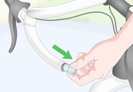 Insert the bar plug. Place the remaining tape at the end of the curved part of the handlebar into the hole at the end of the bar. Insert the bar plug into the hole at the end of the bar. You may need to use quite a bit of pressure to get the plug in the end of the handlebars. If pressing with the heel of your hand doesn't work, use a soft mallet to get it in.
