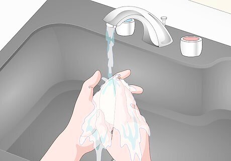 Wash your hands. Clean your hands with soap and water if any debris from the old wrap has gotten on them. This is especially important if you are applying white or light-colored tape. You may wear gloves to keep from getting the tape dirty.