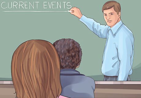Give each student a day to present about a current event. Once a day or week, get a student to present about a topic they read about in the news. They should summarize the article to the class, tell them why it is important, and share images or graphs from the article. It is also important for them to form their own opinion on the issue, so encourage them to include this as part of the presentation. These can be short 5-10 minute presentations. How often you do them depends on how many students are your class. Larger classes may need to have more frequent presentations. For more advanced classes, assign each student a major current issue to cover, such as immigration, animal rights, censorship, or pollution. Ask each student to read multiple news stories and to synthesize the information for the class. This is another great option for an ESL class as it encourages students to read and comprehend the subject before making a presentation in English.