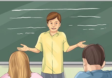Set up a mock election to learn about politics. A mock election can get students engaged with the political process. Form students into groups, and ask each group to choose 1 person to be their candidate for mayor, president, or another imaginary position. Get the groups to divide their tasks according to real campaign positions. For example, each group should have a presidential candidate, a vice-president, a campaign manager, a spokesperson, and a strategist. Each group should make their own political party and platform. Encourage students to take positions on events you have discussed in class, such as the environment or cyberbullying. Don’t forget to hold a debate for your candidates! This debate will show how well they have thought through their issues and give them a chance to argue for their position.