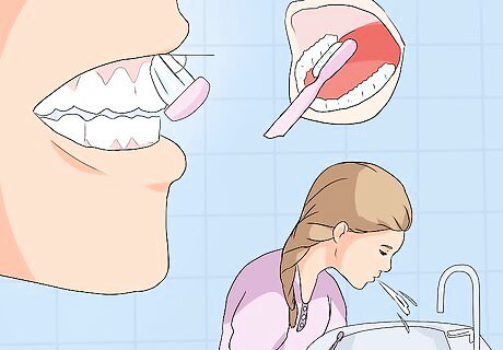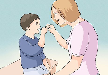 Use toothpaste properly. A rice grain sized amount of toothpaste is recommended for children under 3, and a pea-sized amount for kids ages 3-6. While you should emphasize the need to spit out toothpaste, swallowing this small amount is harmless. There are fluoride toothpastes formulated specifically for infants and toddlers. The often have fruit flavors (and cartoon characters on the packaging) that appeal to kids.