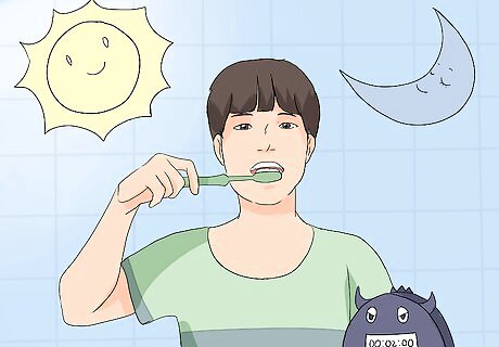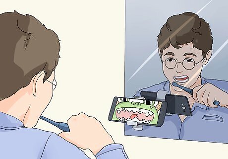 Use music. Sing or play a song that takes about 2 minutes so they know how long to brush. Songs made specifically for kids’ tooth-brushing can be found online, and there are gadgets available that play music, blow bubbles, and do various other things to pass the 2 minutes. An old-fashioned egg timer works in a pinch as well.