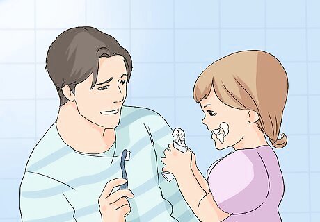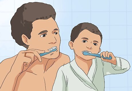 Practice what you preach. You will have many other opportunities to use the “Do as I say, not as I do” method of parenting. Practice good oral health care yourself and let your child know this is important for everyone. Brush your teeth with your child. Let your child feel like he or she is helping to keep you on the right track as well.