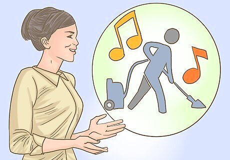 Suggest that they try to make tasks fun. It’s easier to motivate yourself when the task at hand is enjoyable. While tasks like vacuuming or washing dishes aren’t exactly fun, there are ways to make them a little more engaging. For example, they could play music while they do chores, or the family could have a housework competition. To make work more fun for your employees, try having regular outings, such as bowling nights or miniature golf, decorate the office seasonally, and hold company-wide contests. If you're a teacher, group projects or fun activities can be more engaging than a lecture. Maybe your history students could dress up as historical figures and act out a scene.