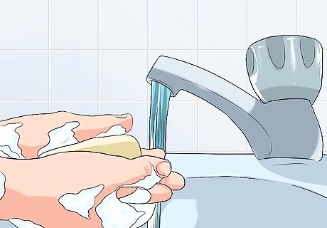 Practice good sanitation to keep yourself and others healthy. When working with fresh ingredients, like vegetables and meats, make sure to clean up after yourself thoroughly. Discard of any unused scraps of food, or add them to a compost pile. Use an antibacterial spray to wipe down counters and the stove top, and wash any cutting boards or utensils used in preparing the food. Always wash your hands after handling raw meats, like chicken, pork, and beef. Don’t open cupboards or pick up a spatula before you’ve washed your hands with soap and hot water.