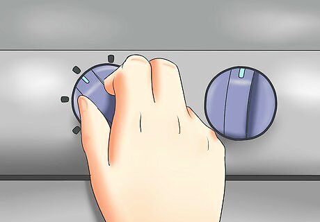 Become familiar with your stovetop. First, find out if your stove uses gas or electricity. If it’s a gas stove, turn on a burner by pushing in a knob until the gas lights a flame. If it’s electric, you’ll just turn the knob to the setting you need. You’ll use the stovetop to heat things up, like boiling water or making soups, and to cook things in a skillet or pan. When recipes call for the burner to be set to “low,” “medium-low,” “high,” or other heat variations, they’re referring to the different levels on the burner knobs, which control how high the flames go (or, how hot the burner gets if you are using an electric stove). After using your stovetop, always double-check to ensure you’ve turned off all the burners.