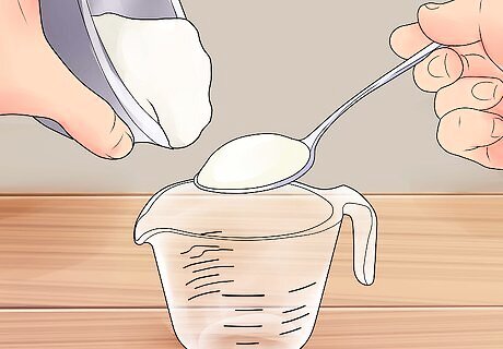 Use measuring cups and spoons to divvy out ingredients. If a recipe calls for 2 tablespoons (30 mL) of something, use a measuring spoon rather than eye-balling the amount. It can also be really helpful to have a food scale, but a lot of home cooks get by just fine without one! When using measuring cups and spoons, unless otherwise directed, keep the amount level with the rim of the vessel. For dry goods, you can use the flat edge of a butter knife to smooth over the top of the measuring cup. For wet (liquid) ingredients, use a liquid-specific measuring cup made of glass or plastic. Set it on the counter so the bottom is flat and carefully measure out how much you need.