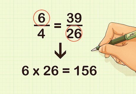 Multiply the denominator of the first fraction and the numerator of the second fraction. Place this product to the left of the equation. For example, 4 × 39 = 156 {\displaystyle 4\times 39=156} 4\times 39=156: 156 6 4 = 39 26 156 {\displaystyle 156{\frac {\cancel {6}}{\cancel {4}}}={\frac {\cancel {39}}{\cancel {26}}}156} 156{\frac {{\cancel {6}}}{{\cancel {4}}}}={\frac {{\cancel {39}}}{{\cancel {26}}}}156