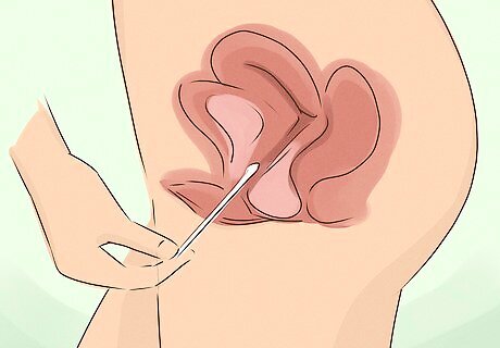 Insert the pH swab into your vagina. Gently slide the swab into your vagina. Continue sliding the swab inward until the opposite end of the swab handle touches the outside skin of your vagina.