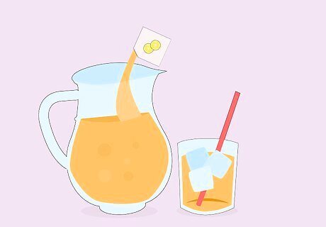 Make a large batch of 2 different low-cost beverages. Try making one non-alcoholic and one alcoholic beverage if you want to have alcohol at the shower. Alternatively, you could omit alcohol from the menu entirely to keep your costs even lower. Some good beverage options include: Iced tea Lemonade Sangria Fruit punch Mimosas Water flavored with lemon wedges, berries, or cucumber slices