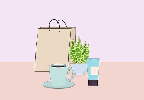 Purchase a few inexpensive items to give as prizes for game winners. There’s no need for elaborate prizes at the shower. Instead, be on the lookout for clearance items and low-cost items that you could use as prizes for the shower. Check out bargain stores and sales to find good deals. Some good, low-cost options for game prizes include: Candles Small, potted plants Coffee mugs Candy bars A box of tea or hot cocoa Scented hand lotion