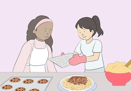 Make the food yourself or with your co-hosts to reduce the cost. Select a couple of easy appetizers you can throw together and pair them with a main dish. Then, serve cupcakes, cookies, or a simple sheet cake for dessert. You can make the food a day in advance and heat it up on the day of the party, or ask your co-hosts or even your guests to bring a dish to share. Try making a fruit, cheese, and cracker tray for a simple, low-cost appetizer. Cook spinach and artichoke dip, pizza dip, or chicken wing dip in your slow-cooker and serve with tortilla chips for something more decadent. Prepare a baked pasta dish for an easy, filling meal on a budget.