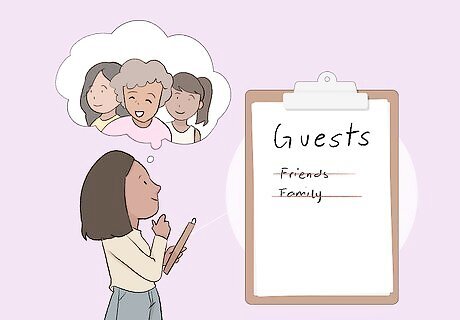 Limit the guest list to close friends and family members only. While it might be tempting to invite everyone who will be at the wedding, this really isn’t necessary. To keep the cost of throwing the shower down, stick to close friends and family members for the bridal shower. The average number of people invited to a bridal shower is usually between 30 and 50, so try to keep your guest list within this range. Identify who you think the bride would most like to see at her shower, or ask her if you’re unsure.