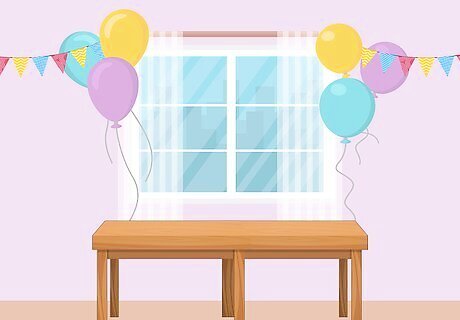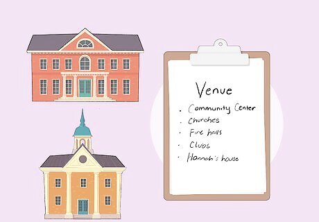 Plan to have the shower at someone’s house or at an inexpensive venue. If you have a large enough house or backyard or one of your cohost’s does, then this is a great way to cut costs. You won’t have to worry about paying for a venue or abiding by their rules regarding caterers or purchasing food from them. If you do decide to go with a venue, look into low-cost options. Some good choices in your community may include: Community centers Churches Fire halls Clubs that one of your co-hosts belongs to, such as an American Legion or YMCA