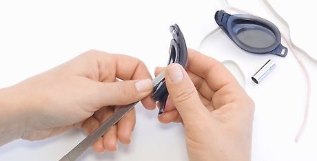 File down any sharp edges on the insides of the eye covers with a nail file. There are sometimes sharp bits of plastic, left over from molding, on the inside edges of the eye covers. Use a nail file to gently file these pieces off, so the goggles don’t hurt your face. If you don’t have a nail file, you could carefully run an X-ACTO knife or other sharp blade along the inside edges to remove any sharp plastic bits. Be very careful if you do this and always slice away from your fingers and other body parts. This might not always be necessary. If you don’t feel any sharp bits of plastic on the inside edges of the goggles, you don’t need to file them.