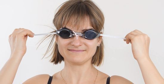 Put the goggles on and pull the rubber strap to adjust the fit. Place the eye covers over your eyes and slide the rubber strap behind your head. Pull on the ends of the strap to tighten it or pull back on the strap to loosen it. The goggles should be tight and snug, but not so tight that they are extremely uncomfortable. Over-tightening them can actually cause them to leak, just like having them too loose can.