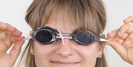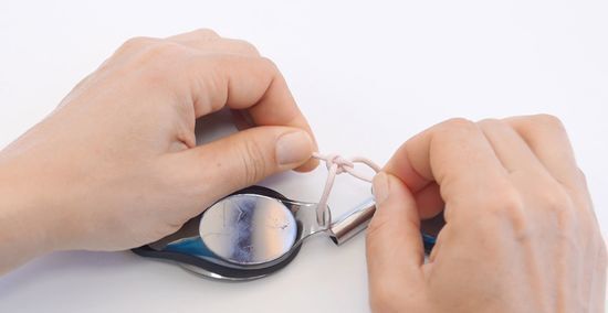 Tie the rubber strap in place around your head. Secure the loose ends of the rubber strap together in the middle of the back of your head with an overhand knot. Make sure the knot is very tight and that the goggles still fit comfortably and tightly. You can always adjust this strap after trying your goggles out a few times, so don’t worry if you aren’t sure whether the fit is 100% perfect yet.