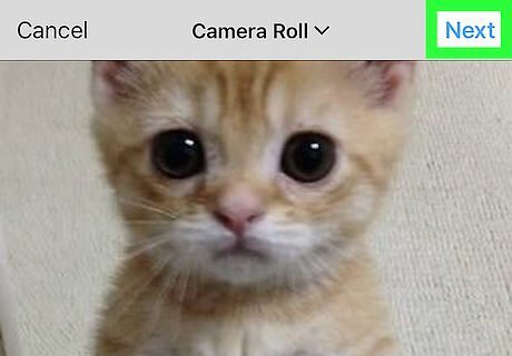Select a photo and tap Next. If you don’t see a list of photos and videos, tap Gallery at the bottom of the screen. To take a new photo instead, tap Photo at the bottom of the screen, then tap the shutter button (the large circle) to snap the photo. To record a new video, tap Video, then press and hold the shutter button (the large circle at the bottom of the screen) to record. When you’re finished recording, lift your finger and tap Next.