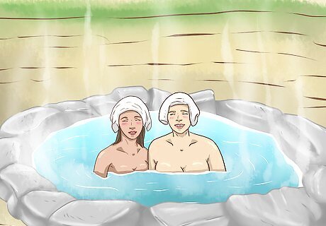 Soak in a hot spring for a few hours of relaxation. Instead of going to an expensive spa facility, go natural and find a hot spring nearby. If you’re feeling adventurous, look for locations that require a hike to reach the hot spring. If you’re in the mood to just relax and enjoy the experience, visit an easily accessible facility built around a natural spring.