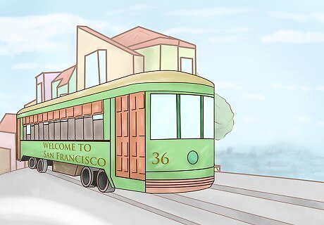 Rely on inexpensive public transit when you visit a city. Using public transit cuts down on gas money as well as parking fees, which can add up quickly in metro areas. Luckily, almost all major cities and large towns in California have reliable public transportation systems, and rides usually only cost around $1-3. If you’re in San Francisco, you can even take a ride on a historic streetcar or an iconic cable car! Popular public transport companies include Los Angeles’ LA Metro, as well as San Francisco’s BART and SamTrans. Remember that if you’re staying outside of the metro area, public transit may be limited to evening or weekend services only.
