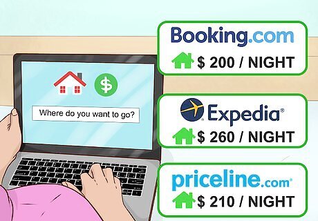 Use competitive hotel booking websites to find the cheapest option. If you want the comfort and luxury of a hotel, make sure you’re getting the most for your money! Websites like Booking.com, Expedia, and Priceline let you compare options side-by-side. Simply search by your destination and trip dates to find a range of budget-friendly hotels!